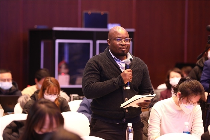 人民網(wǎng)坦桑尼亞籍專(zhuān)家Aris提問(wèn)。主辦方供圖
