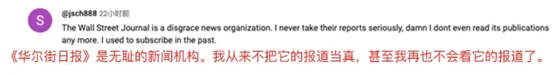 網(wǎng)友@jsch888說:“《華爾街日報(bào)》是無恥的新聞機(jī)構(gòu)。我從來不把它的報(bào)道當(dāng)真,我甚至再也不會看它的報(bào)道了?!?/p>