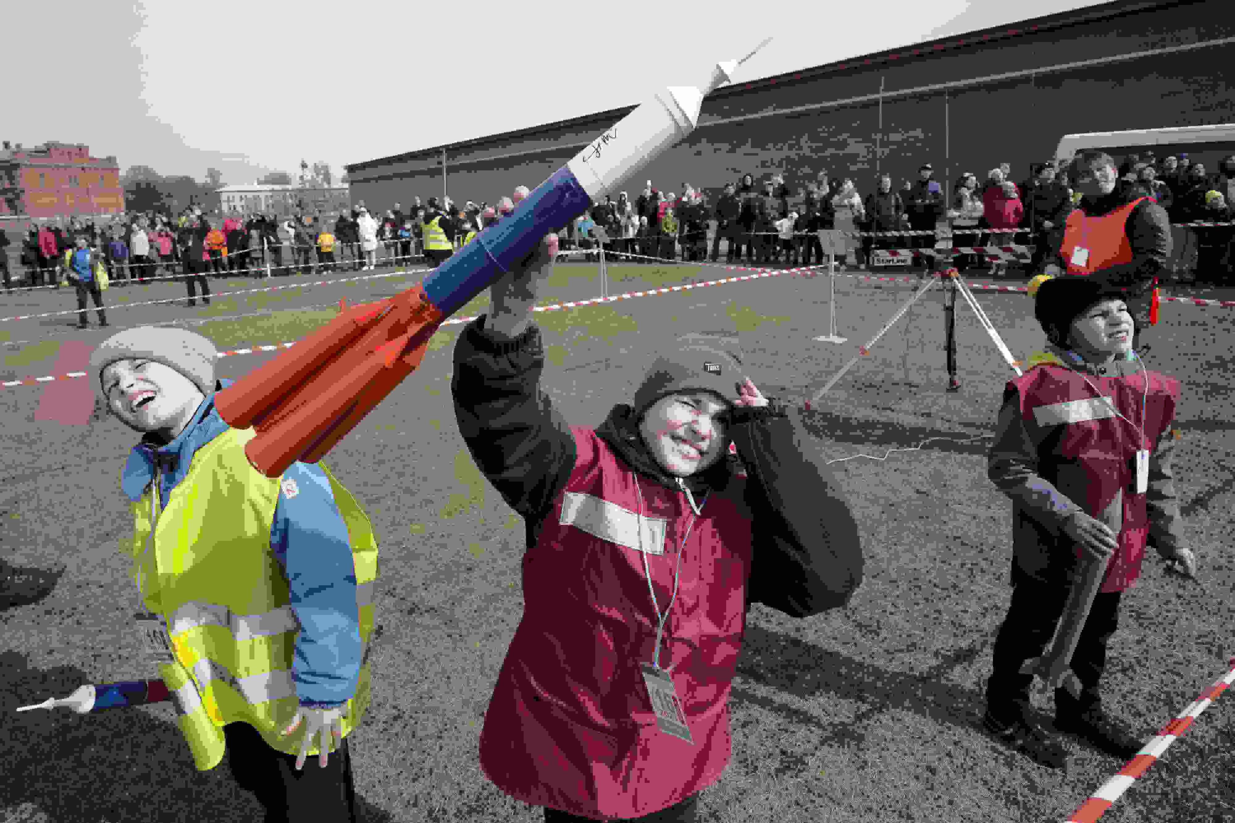 當(dāng)?shù)貢r(shí)間2023年4月16日,俄羅斯圣彼得堡,民眾發(fā)射火箭模型紀(jì)念人類首次太空飛行62周年。 視覺(jué)中國(guó)