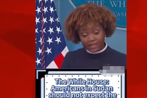 為證明自己的觀點,安柏然在視頻中展示了幾個視頻片段。其中一個片段顯示,一名美媒主持人報道稱,美軍在夜間出動直升機將大約100名美國外交官及其家屬從蘇丹撤出。還有一段視頻顯示,白宮新聞秘書卡里娜·讓-皮埃爾近日在記者會上稱,美國駐蘇丹使館4月16日曾發(fā)布安全警告稱,由于喀土穆安全局勢存在不確定性且機場已關(guān)閉,美國公民此時不應(yīng)期待美國政府協(xié)調(diào)撤僑?!爱攧?wù)之急是,在蘇丹的美國公民要自行安排,在困難情況下確保自身安全。我們建議美國公民就地避難……”她稱。