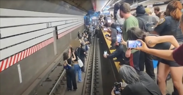 《紐約郵報(bào)》稱,視頻顯示,當(dāng)?shù)貢r(shí)間6日晚6時(shí)左右,在紐約市一地鐵站,多名抗議示威者跳入地鐵軌道,將迎面駛來(lái)的地鐵逼停。抗議者高呼“沒(méi)有正義,沒(méi)有和平”,而在背景聲音中,可以聽(tīng)到警察試圖呼吁維持秩序。這群示威者呼吁為尼利討回公道。這一危險(xiǎn)舉動(dòng)導(dǎo)致該地鐵站暫時(shí)停運(yùn)。