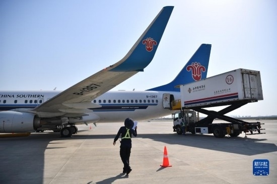 5月13日,西安-烏魯木齊-阿什哈巴德首趟航班在進行飛行前的準(zhǔn)備工作。