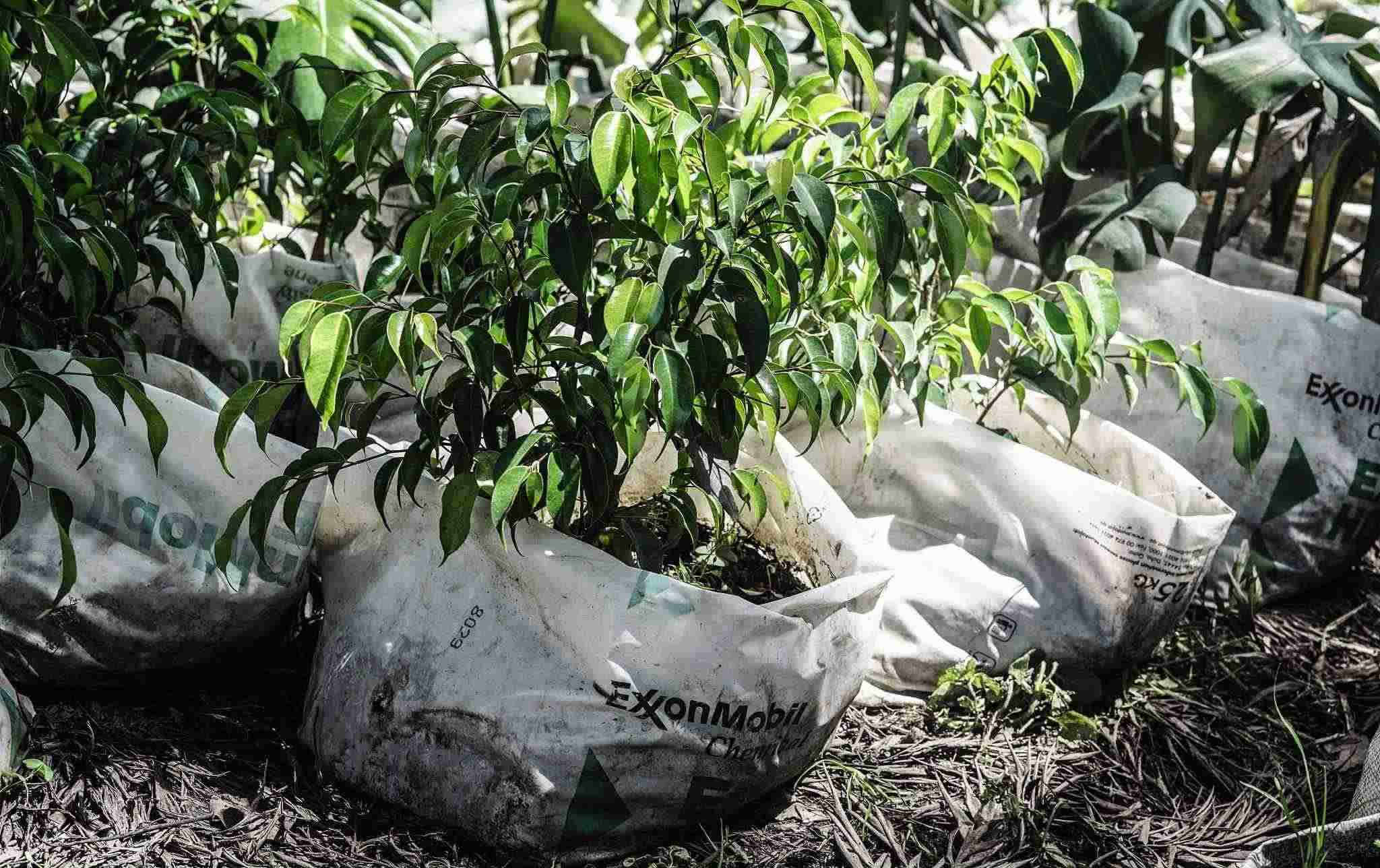 當(dāng)?shù)貢r間2023年5月7日,肯尼亞納庫魯?shù)拿缙岳铮?松梨诎b袋包裹著一棵樹苗。隨著世界充斥著塑料廢物,政府間談判委員會(INC)內(nèi)塑料條約的支持者正在倡導(dǎo)一項具有法律約束力的文書,減少石化工業(yè)生產(chǎn)的原生塑料。