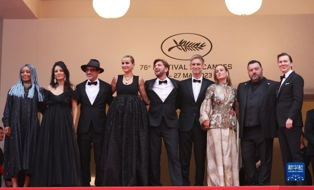 5月16日,在法國戛納舉行的第76屆戛納國際電影節(jié)上,主競賽單元評審團(tuán)主席、瑞典導(dǎo)演魯本·奧斯特倫德(右四)攜眾評委亮相開幕式紅毯。