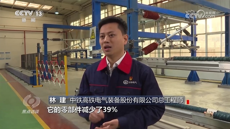 中鐵高鐵電氣裝備股份有限公司總工程師林建:“簡(jiǎn)統(tǒng)化腕臂裝置相對(duì)于傳統(tǒng)的鋁合金三角腕臂裝置來(lái)說(shuō),它的零部件減少了39%,在運(yùn)營(yíng)過(guò)程中,在同等滿足系統(tǒng)使用要求情況下,零部件越少,故障率越小,安全可靠性就會(huì)更高?!?/p>