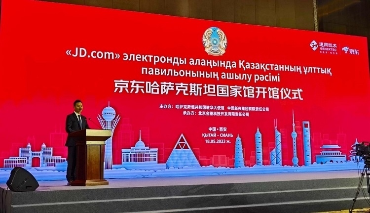京東哈薩克斯坦國(guó)家館開館儀式現(xiàn)場(chǎng)。哈薩克斯坦駐華大使館供圖