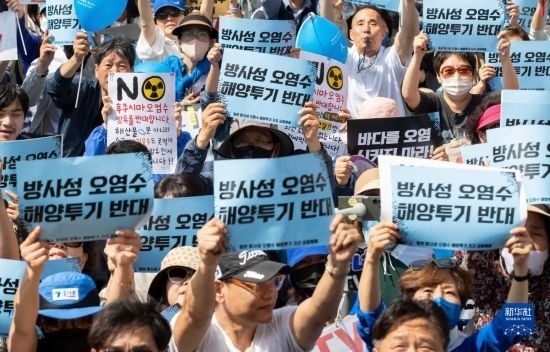 當(dāng)日下午,韓國“韓日歷史正義和平行動”、《6·15共同宣言》韓方實踐委員會等市民團體和從各地趕來的民眾聚集在首爾市世宗大路,舉行“阻止日本放射性污染水排海全國行動”大會,敦促日本政府采取負(fù)責(zé)任的行動、停止推進核污染水排海計劃。