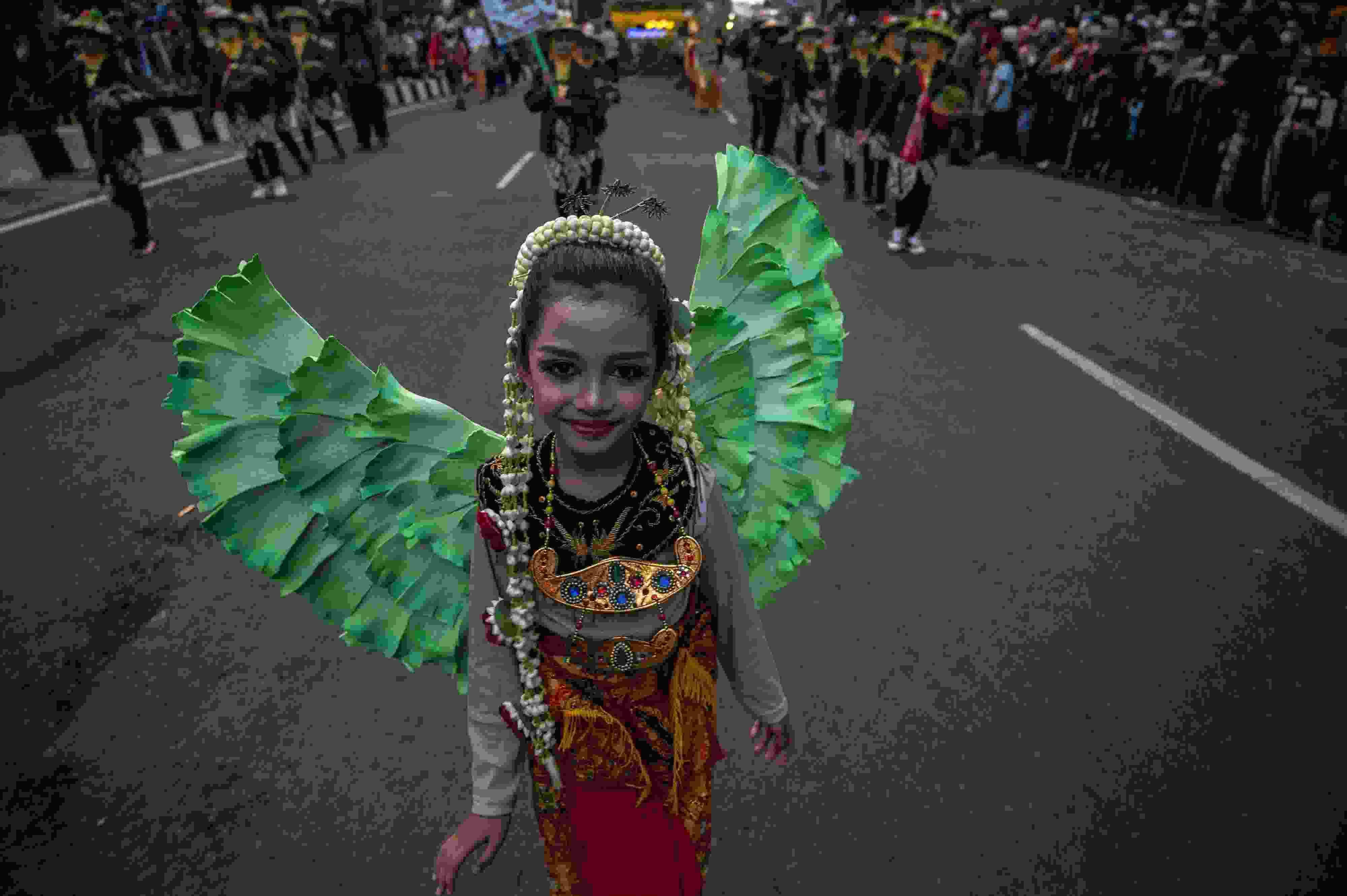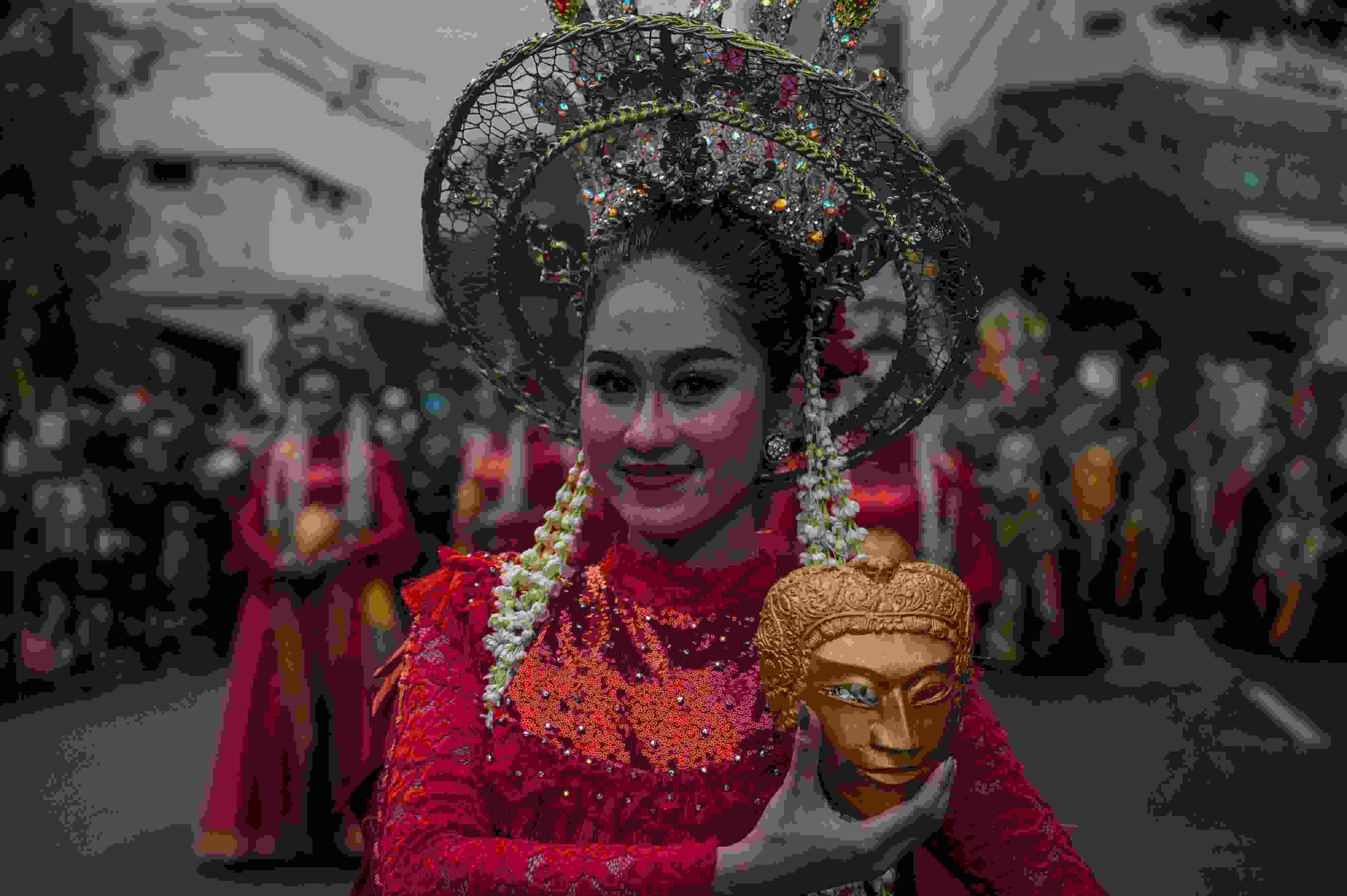 當(dāng)?shù)貢r間2023年5月27日,印度尼西亞泗水,表演者參加慶祝建城730周年的街頭游行。 視覺中國