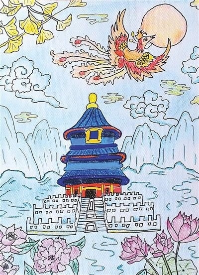 匈牙利唐人街華人學(xué)校學(xué)生林薇琪的繪畫作品。匈牙利唐人街華人學(xué)校供圖