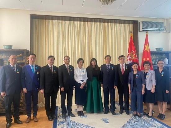 6月6日,塞爾維亞駐華大使館舉行塞爾維亞國家勛章頒授儀式,向中國赴塞爾維亞抗疫醫(yī)療專家組成員頒發(fā)“金質(zhì)功勛獎?wù)隆保员碚盟麄優(yōu)橹С秩麪柧S亞抗擊新冠疫情所作的貢獻。