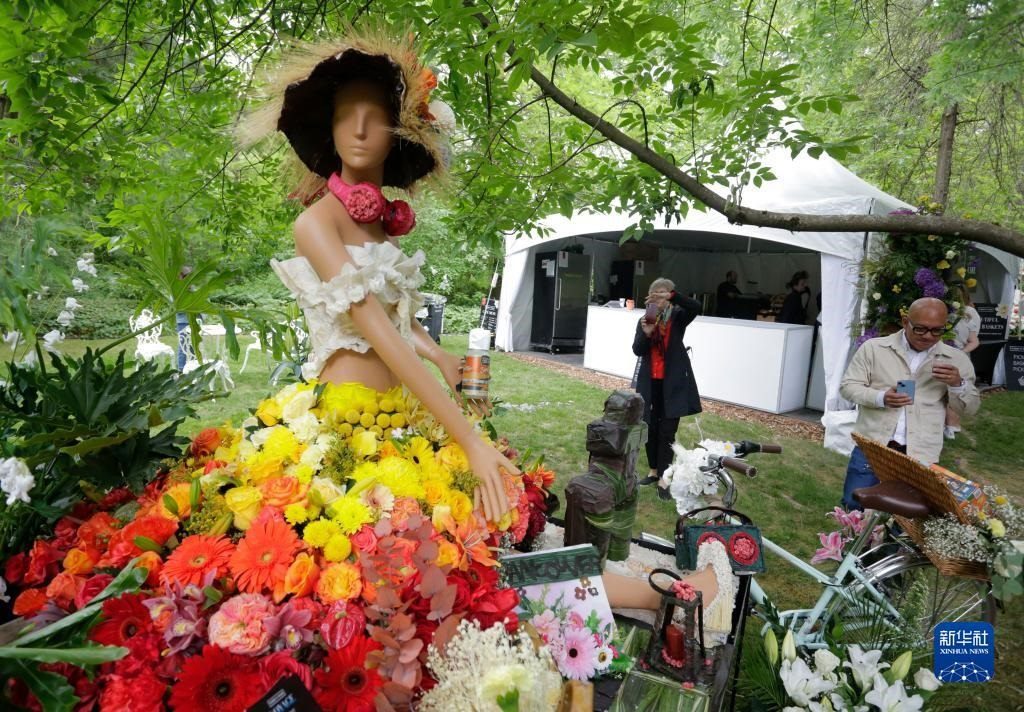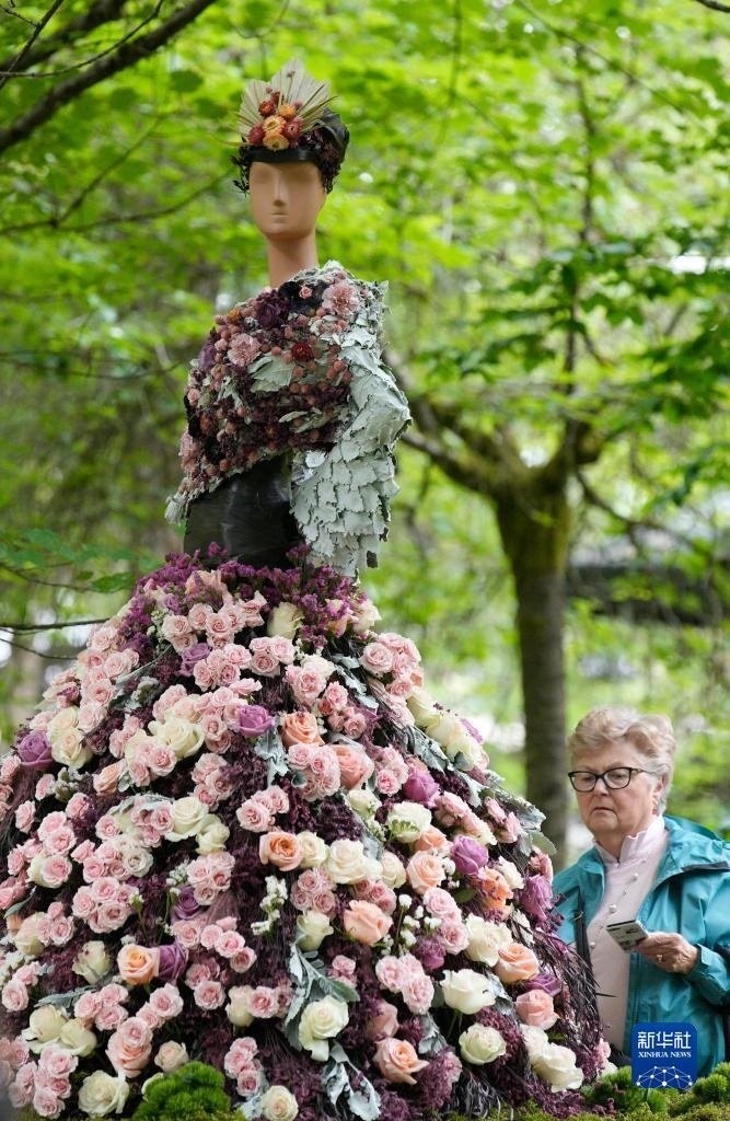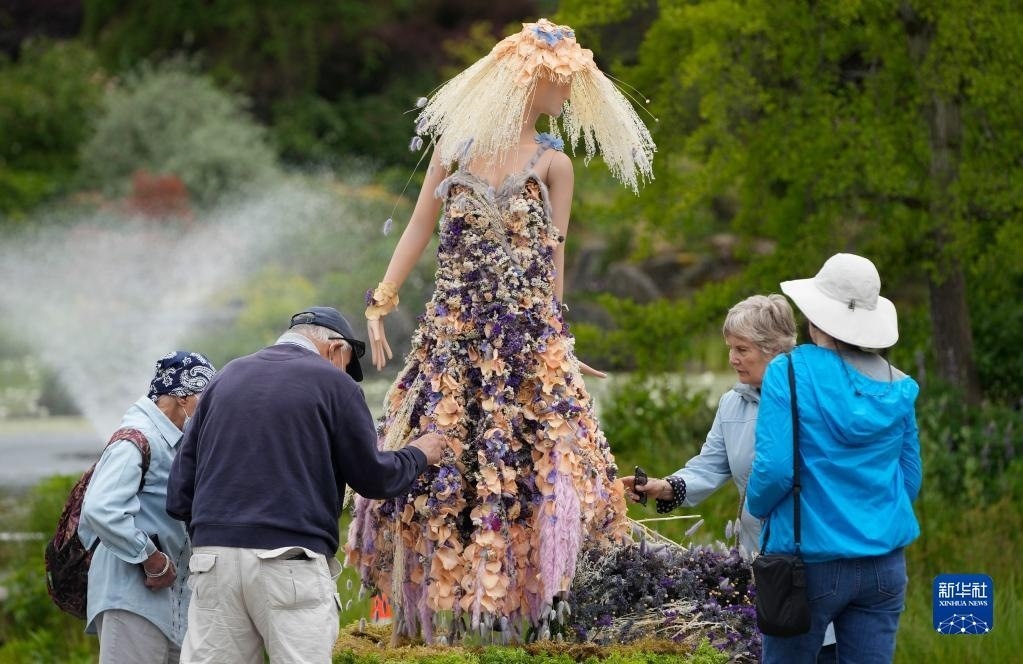 這是6月9日在加拿大溫哥華舉辦的“花卉城市之旅”花卉展上拍攝的花卉裝置藝術作品。新華社發(fā)(梁森攝)