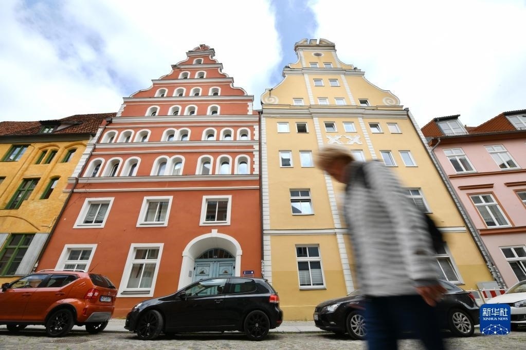 6月1日,行人在德國(guó)施特拉爾松德街頭行走。
