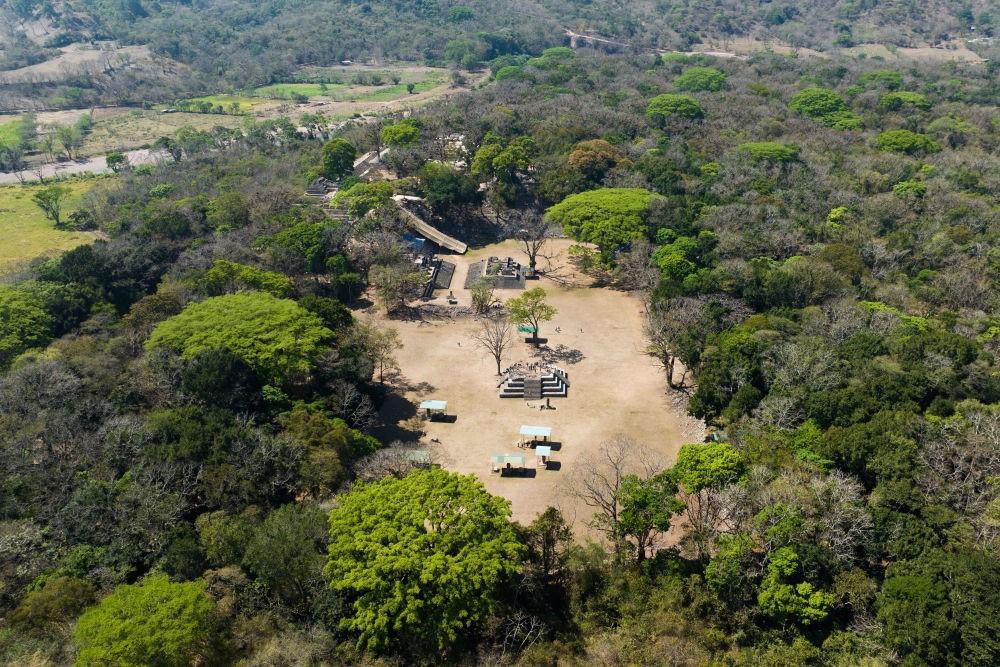 這是4月1日航拍的洪都拉斯科潘瑪雅古城遺址(無人機(jī)照片)。新華社記者 辛悅衛(wèi) 攝