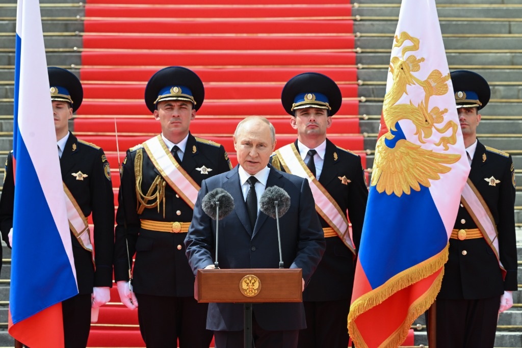 普京當(dāng)天在克里姆林宮內(nèi)的教堂廣場接見參與平叛的國防部、聯(lián)邦安全局、國民近衛(wèi)軍和內(nèi)務(wù)部等強力部門代表大約2500人,發(fā)表電視直播講話,感謝他們勇敢、忠于職守、對俄羅斯人民忠誠。