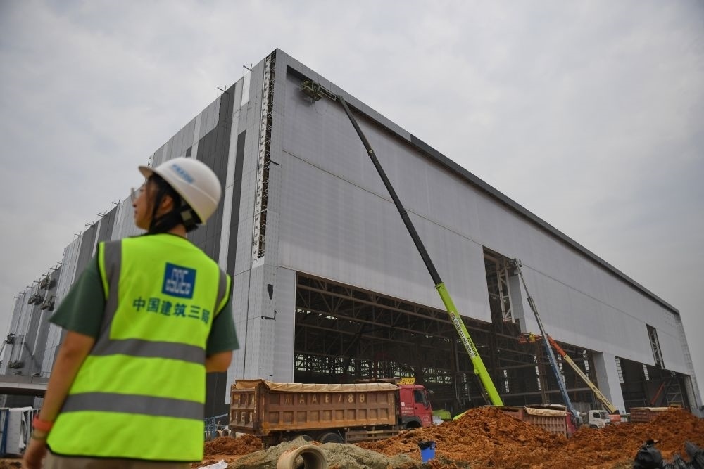 2023年8月15日,在位于四川省成都市雙流區(qū)的空中客車(成都)飛機全生命周期服務有限公司項目建設現(xiàn)場,工人在作業(yè)。新華社發(fā)(李向雨 攝)