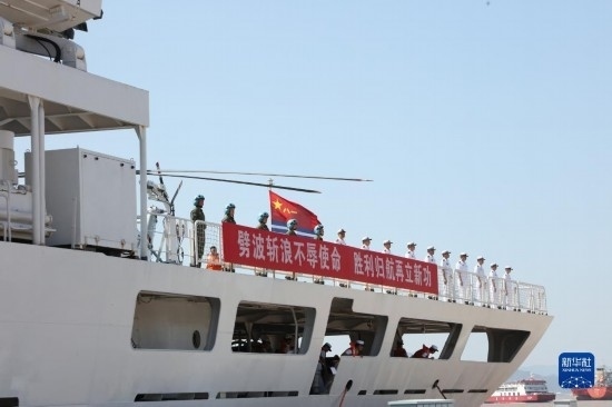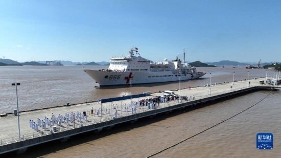 9月19日,執(zhí)行“和諧使命-2023”任務的海軍“和平方舟”號醫(yī)院船順利返回浙江舟山母港。新華社發(fā)(桂江波 攝)