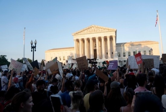 2022年6月24日,墮胎權支持者在美國首都華盛頓的聯(lián)邦最高法院外抗議。當天,美國聯(lián)邦最高法院推翻近半個世紀前在聯(lián)邦層面確立墮胎權的判例“羅訴韋德案”。新華社記者劉杰攝