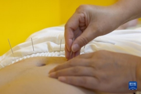 7月20日,在匈牙利布達(dá)佩斯匈牙利岐黃中醫(yī)藥中心,甘肅外派專(zhuān)家張海芳在為患者做針灸治療。新華社發(fā)(弗爾季·奧蒂洛攝)