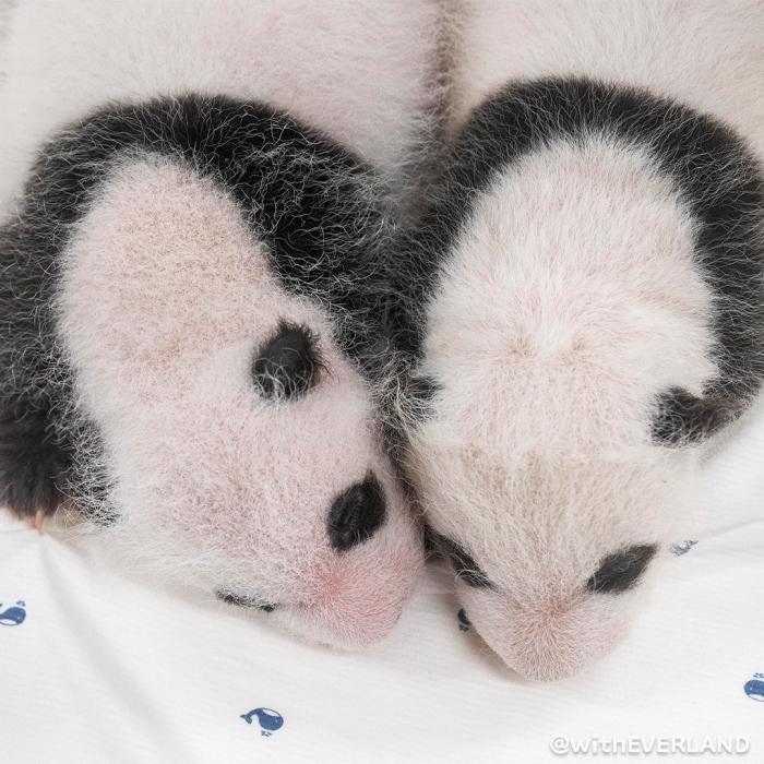據(jù)報(bào)道,從公開的照片來看,這對(duì)大熊貓寶寶已開始慢慢長(zhǎng)胖,眼睛、耳朵、肩膀、胳膊、腿周圍,顯現(xiàn)出獨(dú)特的黑色斑紋。