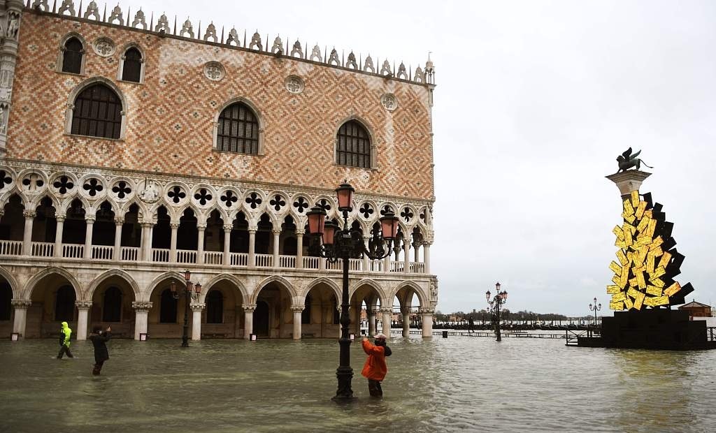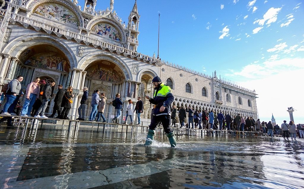 意大利威尼斯近日水位上漲,城內(nèi)部分地區(qū)積水嚴(yán)重,游客走在水中游覽觀光。聯(lián)合國(guó)教科文組織認(rèn)為,威尼斯每年接待約2800萬(wàn)游客,當(dāng)?shù)夭粩噙M(jìn)行城市建設(shè),導(dǎo)致過(guò)度開(kāi)發(fā),市中心一些高大建筑影響城市整體形象。此外,全球變暖導(dǎo)致海平面上升,四面環(huán)水的威尼斯非常容易遭受洪水侵襲,但威尼斯當(dāng)局沒(méi)有充足、詳細(xì)的應(yīng)對(duì)方案。威尼斯正面臨“不可逆轉(zhuǎn)”的破壞風(fēng)險(xiǎn),意大利有關(guān)部門(mén)“缺乏戰(zhàn)略眼光”,無(wú)法解決這座水城目前面臨的種種問(wèn)題。