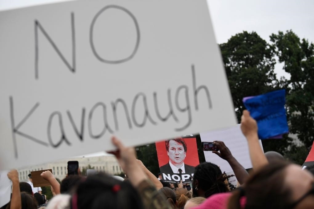 2018年10月6日,在美國首都華盛頓聯(lián)邦最高法院前,抗議者反對(duì)卡瓦諾出任聯(lián)邦最高法院大法官。新華社記者劉杰攝