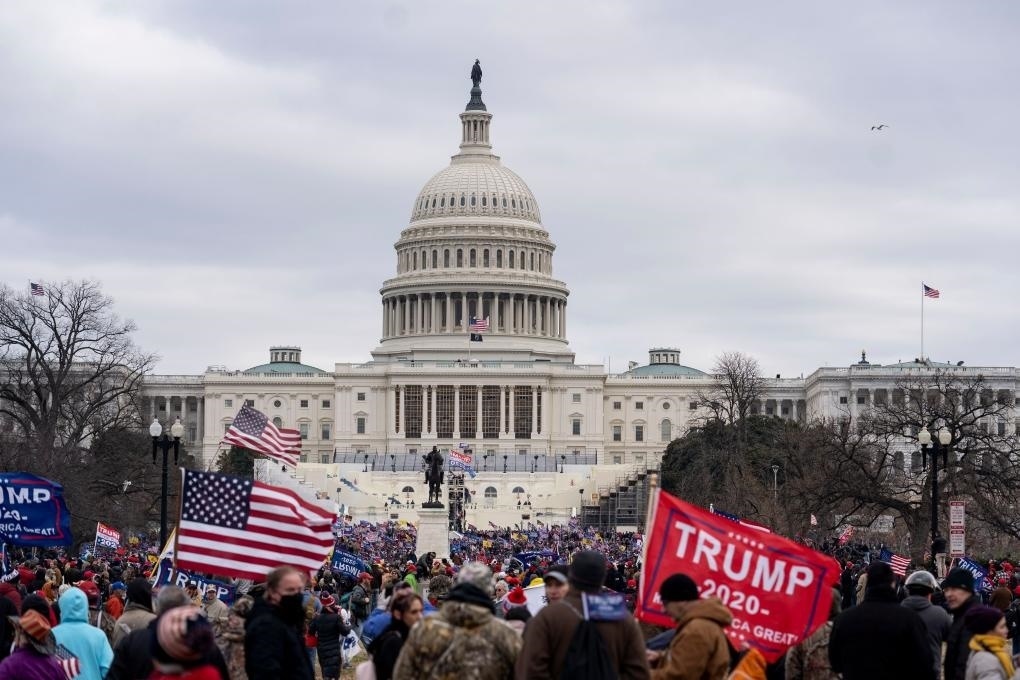 2021年1月6日,在美國首都華盛頓,時(shí)任總統(tǒng)特朗普的支持者在國會(huì)外舉行示威游行。部分示威者沖進(jìn)國會(huì)大廈,與警方發(fā)生沖突。新華社記者劉杰攝