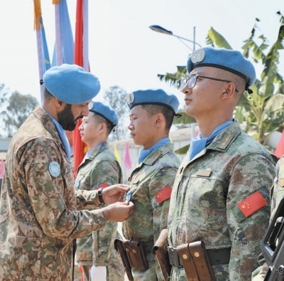 今年是中國赴剛果(金)維和任務20周年。日前,中國第二十六批赴剛果(金)維和部隊全體官兵被授予聯(lián)合國“和平勛章”,這是聯(lián)合國表彰維和人員的最高榮譽。