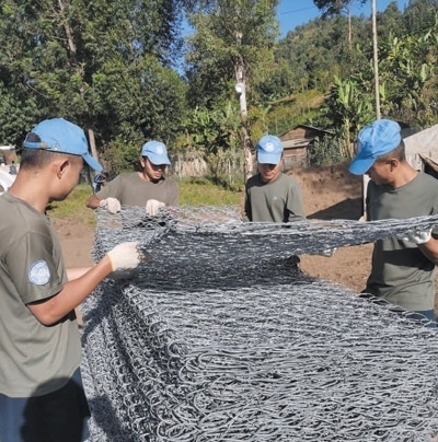 自去年9月部署到任務區(qū)以來,第二十六批維和工兵分隊已完成32項工程任務、26項工程勘察,累計修筑道路52公里、搭建板房50間、構筑圍墻2100米。今年5月,南基伍省卡萊亥地區(qū)遭受強降雨和洪水災害,造成400多人死亡,上千座民居被沖毀。關鍵運輸線路上的魯濟拉橋被洪水沖垮,切斷了人道主義援助物資的運輸線,給當?shù)孛癖娊煌ǔ鲂泻涂购榫葹脑斐蓢乐赜绊?。工兵分隊接到任務后,第一時間奔赴災區(qū)一線,在河邊安營扎寨,執(zhí)行工程救援。7月,嶄新的魯濟拉橋已經(jīng)順利完工。