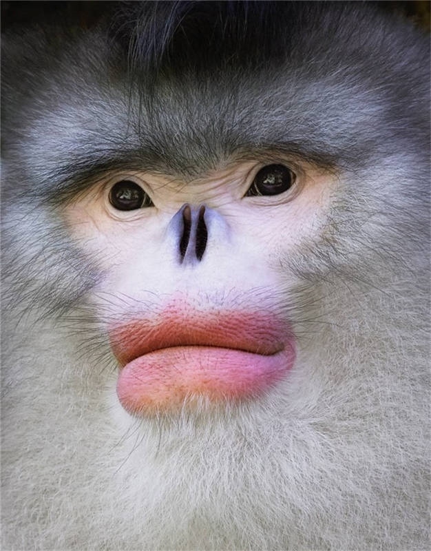 記得我和助手連續(xù)幾天反復(fù)登山,幾周后,我們終于發(fā)現(xiàn)了金絲猴。它們看起來(lái)就像做了整容手術(shù),有著大紅唇等獨(dú)特的特征。有一天,我順著山路,壓根沒(méi)在想金絲猴。突然,我發(fā)現(xiàn)在我腳邊,它正直視著我,我轉(zhuǎn)身按動(dòng)快門,抓拍到那張近距離的動(dòng)物肖像。