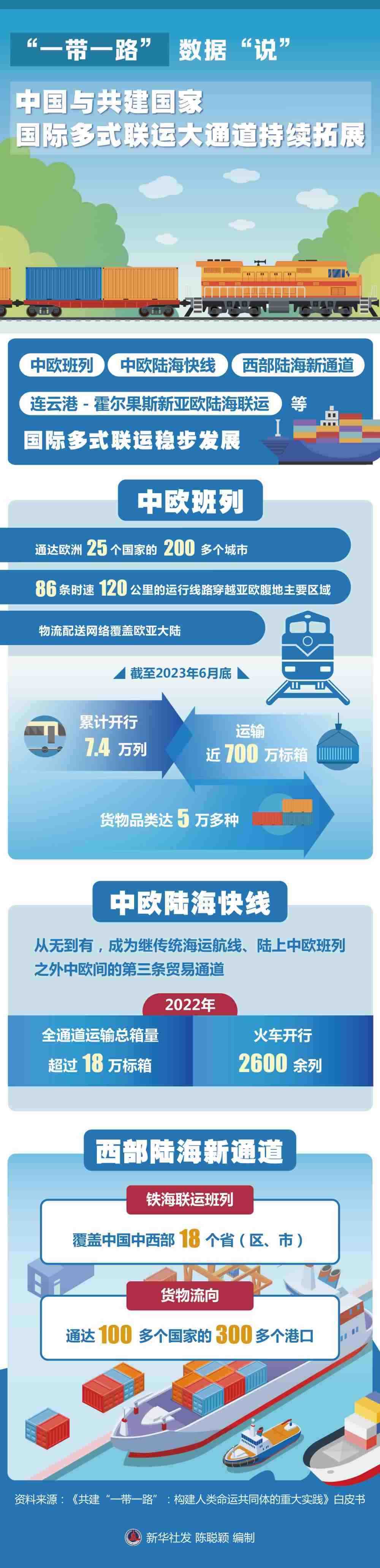 國際多式聯(lián)運(yùn)大通道持續(xù)拓展。中歐班列、中歐陸??炀€、西部陸海新通道、連云港-霍爾果斯新亞歐陸海聯(lián)運(yùn)等國際多式聯(lián)運(yùn)穩(wěn)步發(fā)展。中歐班列通達(dá)歐洲25個(gè)國家的200多個(gè)城市,86條時(shí)速120公里的運(yùn)行線路穿越亞歐腹地主要區(qū)域,物流配送網(wǎng)絡(luò)覆蓋歐亞大陸;截至2023年6月底,中歐班列累計(jì)開行7.4萬列,運(yùn)輸近700萬標(biāo)箱,貨物品類達(dá)5萬多種,涉及汽車整車、機(jī)械設(shè)備、電子產(chǎn)品等53大門類,合計(jì)貨值超3000億美元。中歐陸??炀€從無到有,成為繼傳統(tǒng)海運(yùn)航線、陸上中歐班列之外中歐間的第三條貿(mào)易通道,2022年全通道運(yùn)輸總箱量超過18萬標(biāo)箱,火車開行2600余列。西部陸海新通道鐵海聯(lián)運(yùn)班列覆蓋中國中西部18個(gè)省(區(qū)、市),貨物流向通達(dá)100多個(gè)國家的300多個(gè)港口。