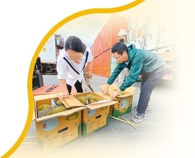 “針對(duì)水果等生鮮農(nóng)產(chǎn)品特點(diǎn),我們采取7×24小時(shí)預(yù)約通關(guān),設(shè)置農(nóng)食產(chǎn)品專(zhuān)用窗口,優(yōu)先辦理鮮活易腐農(nóng)產(chǎn)品接單、放行業(yè)務(wù),并采取即到即檢即放模式,確保進(jìn)口水果通關(guān)零延遲。”勐臘海關(guān)關(guān)長(zhǎng)韓斌說(shuō)。