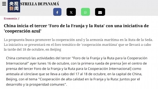 第三屆“一帶一路”國(guó)際合作高峰論壇也受到多國(guó)主流媒體關(guān)注。巴拿馬歷史最悠久,全國(guó)發(fā)行量最大的日?qǐng)?bào)之一《巴拿馬星報(bào)》刊發(fā)了主題報(bào)道,聚焦高峰論壇發(fā)布的《“一帶一路”藍(lán)色合作倡議》,并評(píng)論稱這一倡議體現(xiàn)了中國(guó)對(duì)于高質(zhì)量推進(jìn)“一帶一路”海洋合作的高度重視。