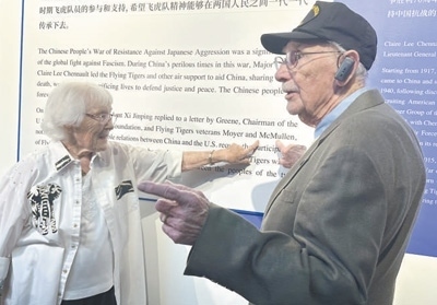 走進(jìn)博物館,代表團(tuán)成員在一張張老照片、一件件珍貴實(shí)物前流連,認(rèn)真聆聽講解,還不時(shí)與身邊親友交談。麥克馬倫在展板上看到自己的名字后,興奮地向妻子珍妮弗指了指名字的位置。他曾擔(dān)任B—24轟炸機(jī)機(jī)頭炮手和助理飛行機(jī)械師,在昆明和成都參加對(duì)日作戰(zhàn)??粗AЧ窭锏恼蛊?,他感慨:“美中兩國人民的友誼將延綿不斷。”
