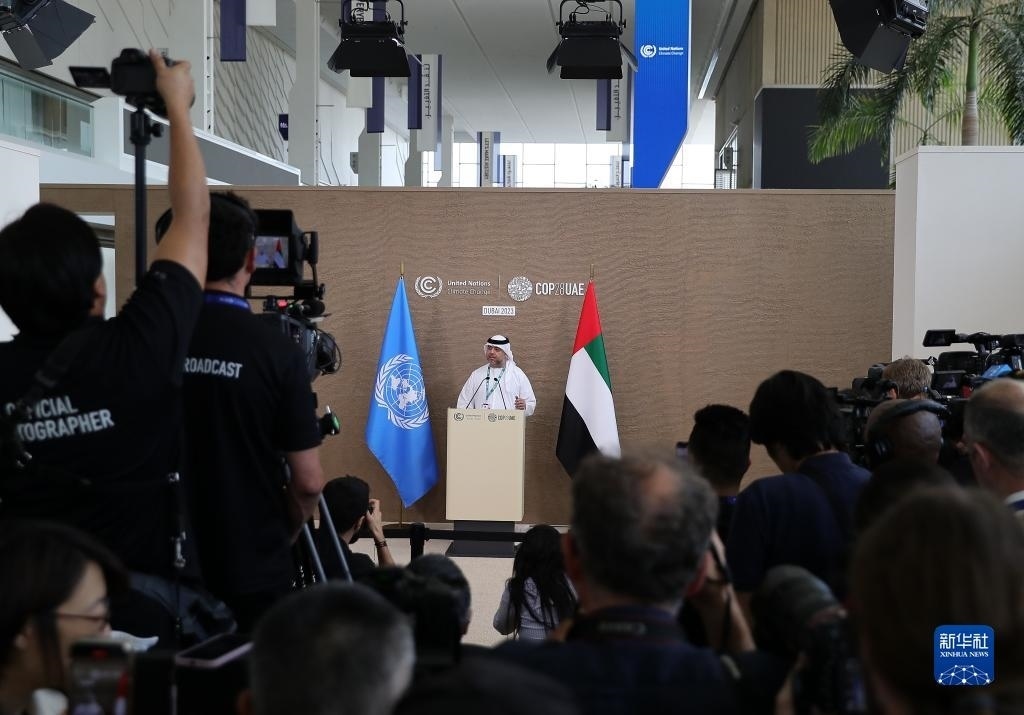12月12日,在阿聯(lián)酋迪拜,COP28總干事馬吉德·蘇韋迪在新聞發(fā)布會(huì)上回答記者提問(wèn)。新華社記者 王東震 攝
