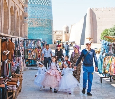 9月21日,人們在烏茲別克斯坦花剌子模州的希瓦古城游覽。新華社記者 鄔惠我攝