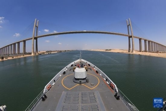 中國海軍第26批護航編隊航行通過蘇伊士運河(2017年9月2日攝)。新華社發(fā)(林健攝)