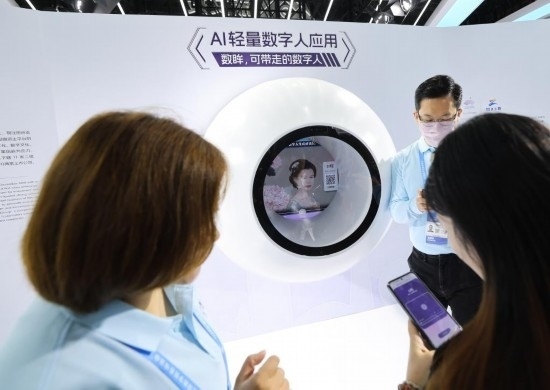 2023年11月23日,參觀者在第二屆全球數(shù)字貿(mào)易博覽會(huì)上體驗(yàn)數(shù)字人應(yīng)用。新華社記者徐昱攝