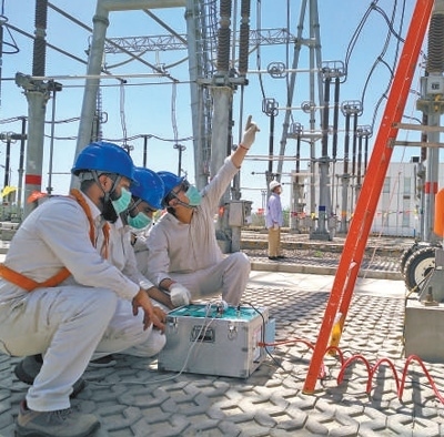 在巴基斯坦默蒂亞里—拉合爾直流輸電項(xiàng)目現(xiàn)場,中巴工程師對設(shè)備開展日常檢修。本報(bào)巴基斯坦分社 薩義德·邁赫迪攝
