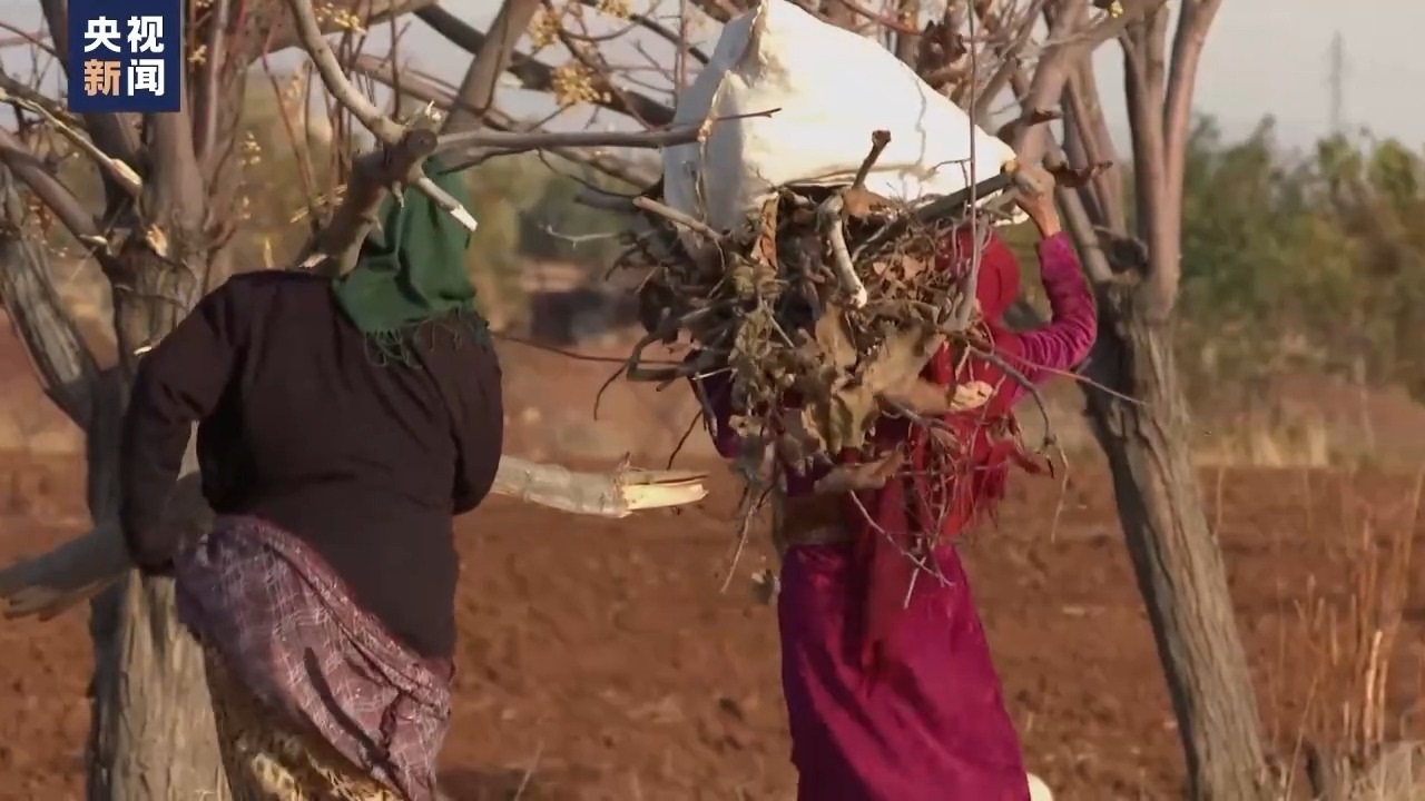 在村口,我們看到扛著柴火的農村婦女,她們撿樹枝給家里取暖。村外,我們發(fā)現(xiàn)一些地區(qū)的樹木都快被砍光了。戰(zhàn)爭和制裁帶來的人道主義危機已經(jīng)讓鄉(xiāng)村空殼化。而戰(zhàn)前,這還是一片被譽為“中東糧倉”的小麥出口地。
