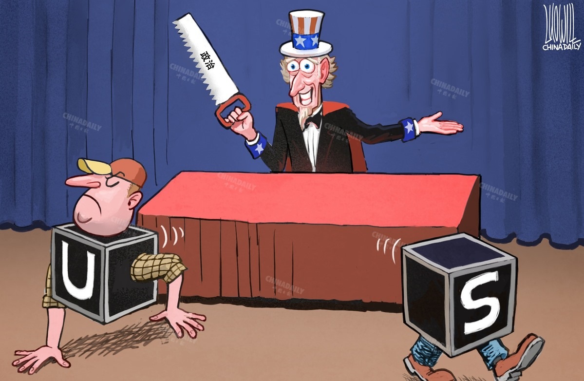 美國政治導(dǎo)致社會(huì)分裂。(來源:中國日?qǐng)?bào) 作者:羅杰)