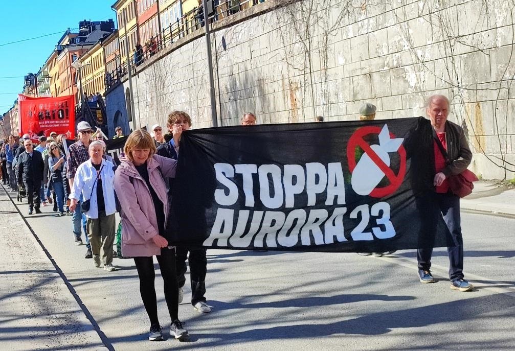 2023年4月22日,人們在瑞典斯德哥爾摩參加抗議活動。瑞典全國近20個城市當(dāng)日舉行活動,抗議在瑞典舉行大規(guī)模國際軍事演習(xí)、反對瑞典加入北約。新華社發(fā)(帕特里克·埃克斯特蘭德攝)