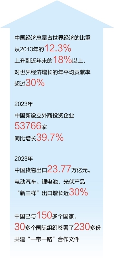 丁純:在局部地區(qū)地緣政治緊張等挑戰(zhàn)下,中國(guó)繼續(xù)發(fā)揮促進(jìn)世界經(jīng)濟(jì)增長(zhǎng)的引擎作用——中國(guó)繼續(xù)支持多邊主義和自由貿(mào)易,貨物貿(mào)易總額居世界第一,發(fā)布穩(wěn)外資24條政策措施,宣布全面取消制造業(yè)領(lǐng)域外資準(zhǔn)入限制措施,同時(shí)通過(guò)共建“一帶一路”推進(jìn)交通、信息等基礎(chǔ)設(shè)施建設(shè)和貿(mào)易投資自由化便利化。
