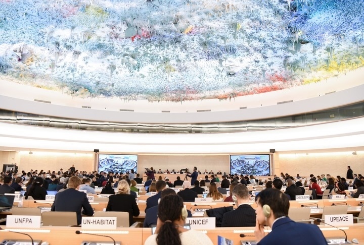 ?這是1月23日在瑞士日內(nèi)瓦拍攝的聯(lián)合國人權(quán)理事會第四輪國別人權(quán)審議現(xiàn)場。新華社記者連漪攝