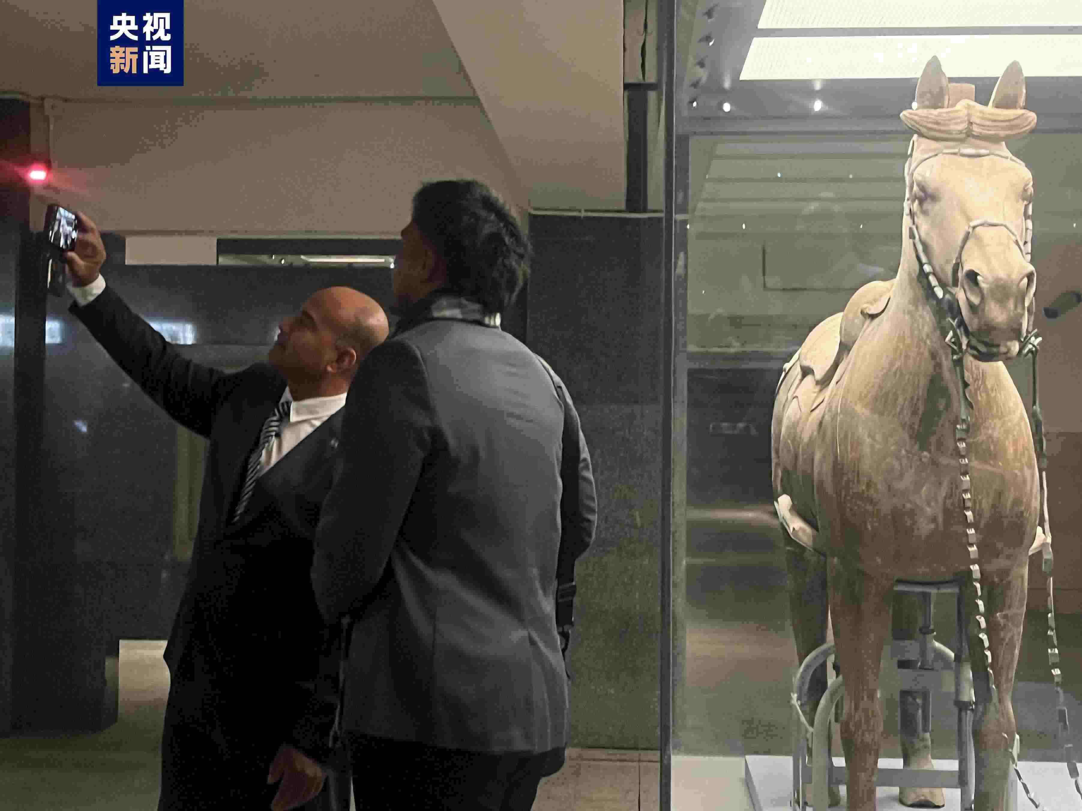 瑙魯總統(tǒng)阿迪昂今天(27日)在陜西西安繼續(xù)訪華之旅。在秦始皇兵馬俑博物館,阿迪昂總統(tǒng)先后參觀了一號(hào)坑、三號(hào)坑和二號(hào)坑,了解秦兵馬俑的歷史。參訪過(guò)程中,阿迪昂總統(tǒng)不時(shí)拿出手機(jī)自拍,記錄這段與古老中國(guó)“相遇”的難忘之旅。在接受總臺(tái)央視記者采訪時(shí),阿迪昂總統(tǒng)表示,自己一直非常期待能夠來(lái)到這里,希望通過(guò)此訪增進(jìn)對(duì)中國(guó)的了解,也相信瑙中兩國(guó)加強(qiáng)合作,將助力瑙魯實(shí)現(xiàn)進(jìn)一步發(fā)展與繁榮。