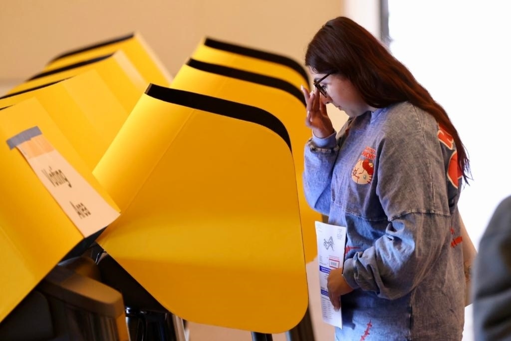 2024年3月5日,選民在美國洛杉磯一處投票站投票。新華社發(fā)
