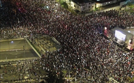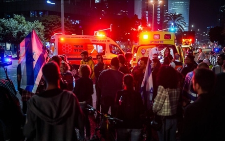 當(dāng)?shù)貢r(shí)間6日晚,在特拉維夫舉行的反政府集會(huì)上,一輛汽車突然沖撞人群,造成5名抗議者受傷 圖源:《以色列時(shí)報(bào)》