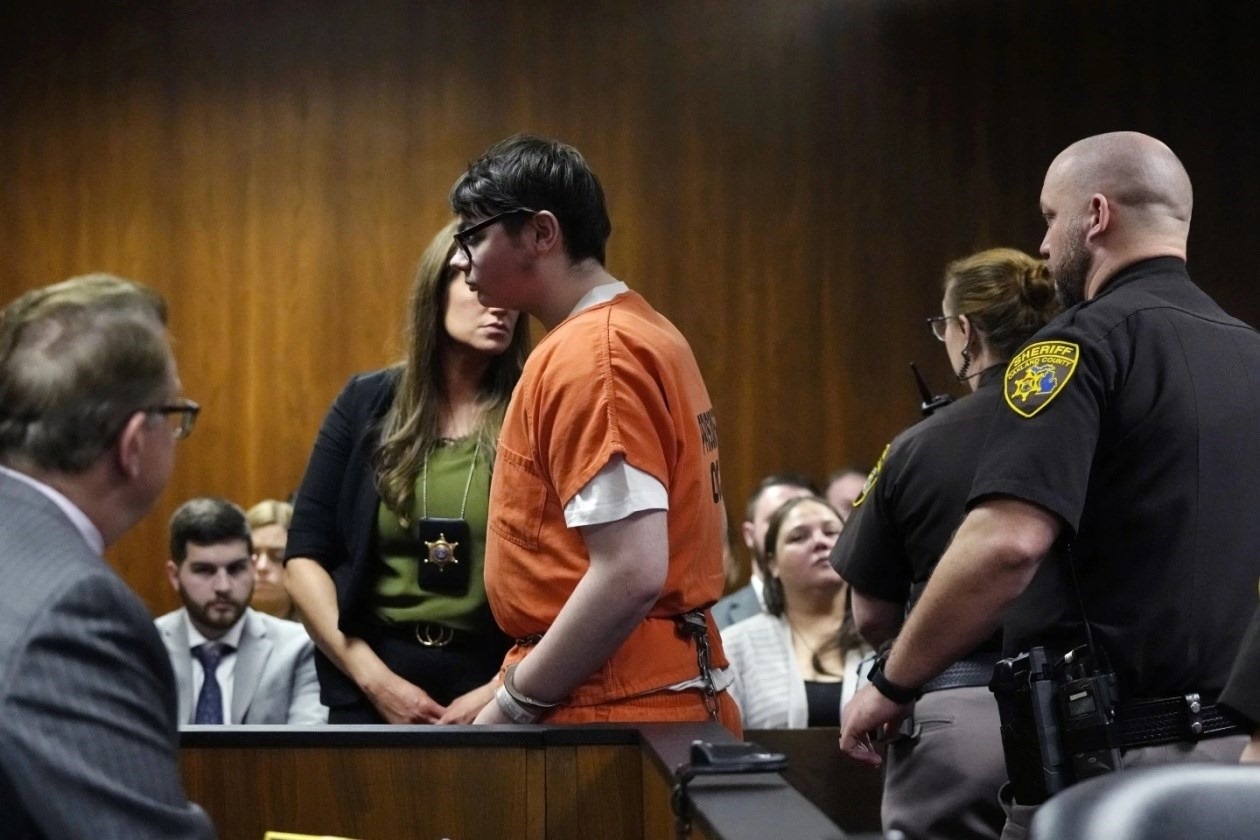 2021年11月30日,時年15歲的伊森·克倫布利在密歇根州底特律市附近的牛津鎮(zhèn)中學開槍打死4名同學,打傷6名同學和一名老師。他于2022年承認4項一級謀殺罪名,被判處終身監(jiān)禁且不得假釋。