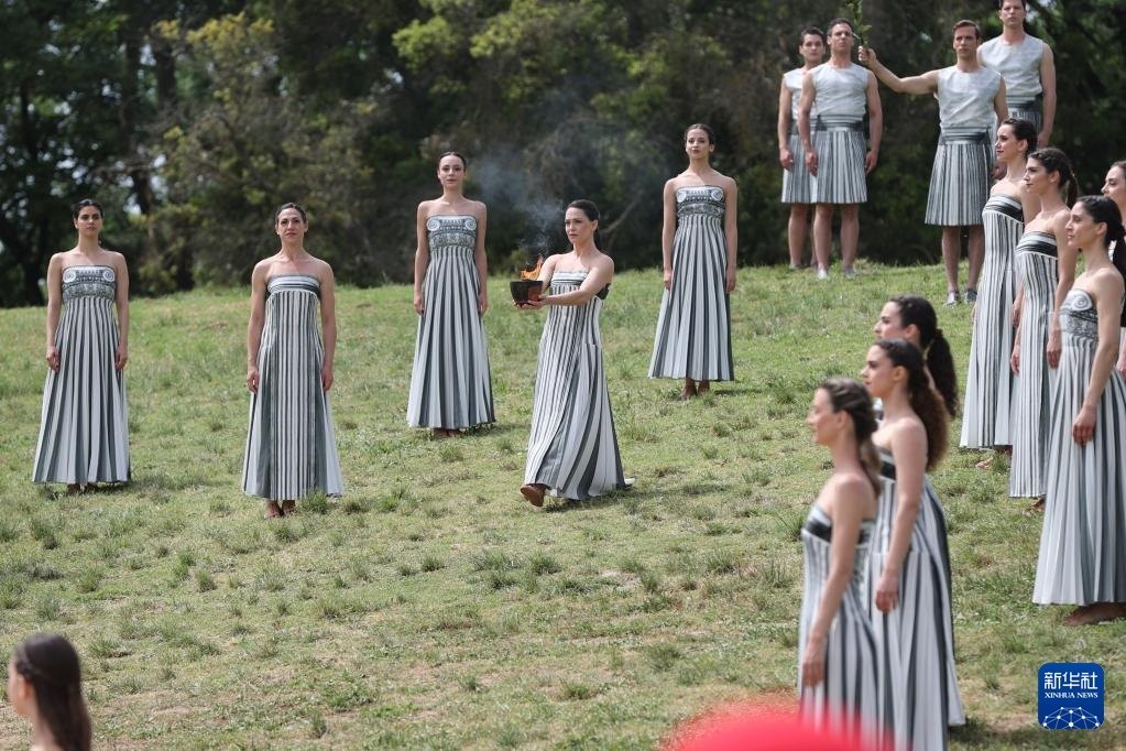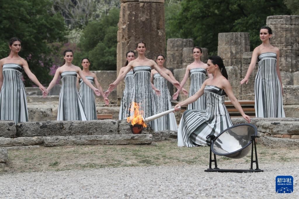 當日,2024年巴黎奧運會圣火火種采集儀式在希臘伯羅奔尼撒半島的古奧林匹亞遺址舉行。