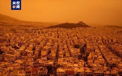 當?shù)貢r間23日,希臘雅典遭遇來自非洲撒哈拉沙漠的沙塵侵襲。當天在希臘議會大樓附近拍攝的畫面顯示,雅典城市上空變成橙黃色,樓房和街道籠罩在沙塵之中。
