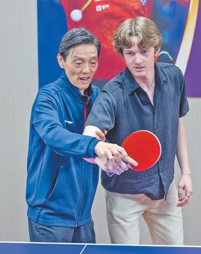 馬斯卡廷中學(xué)學(xué)生在中國教練指導(dǎo)下打乒乓球。